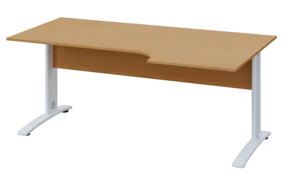 CRK 28 - 186 stůl kancelářský, rohový, levý, kovová podnož bílá, deska 25 mm, široký 1800 mm, buk royal
