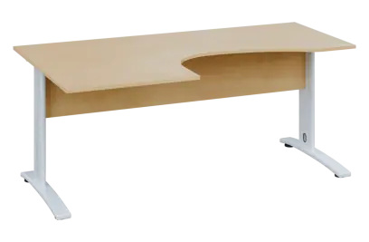 CEK 27 - 187 stůl kancelářský, rohový, levý, kovová podnož bílá, deska 25 mm, široký 1800 mm, buk royal