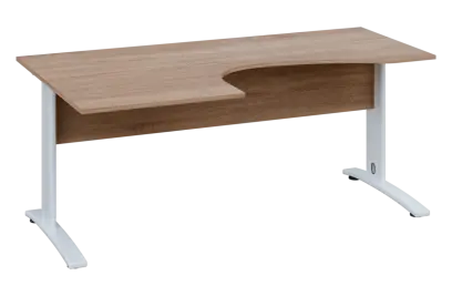 CEK 27 - 187 stůl kancelářský, rohový, levý, kovová podnož bílá, deska 25 mm, široký 1800 mm, dub bardolino