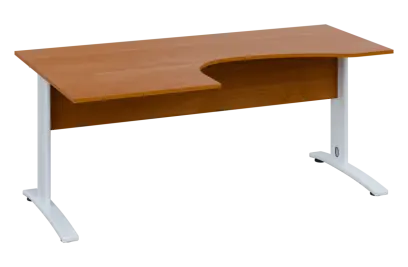 CEK 27 - 187 stůl kancelářský, rohový, levý, kovová podnož bílá, deska 25 mm, široký 1800 mm, třešeň šumavská