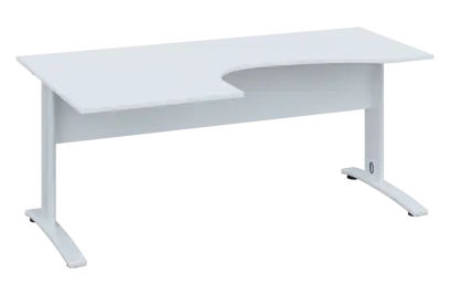 CEK 27 - 187 stůl kancelářský, rohový, levý, kovová podnož bílá, deska 25 mm, široký 1800 mm, bílá