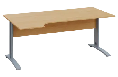 CRK 18 - 166 stůl kancelářský, rohový, levý, kovová podnož stříbrná, deska 18 mm, široký 1600 mm, javor horský