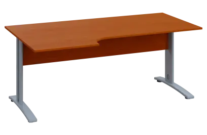 CEK 17 - 187 stůl kancelářský, rohový, pravý, kovová podnož stříbrná, deska 18 mm, široký 1800 mm, třešeň šumavská