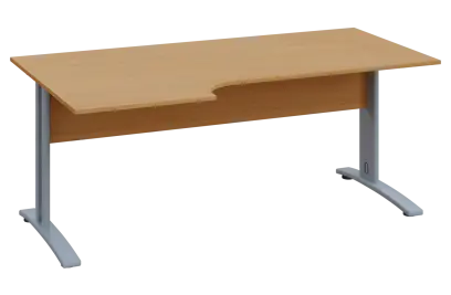 CEK 27 - 187 stůl kancelářský, rohový, levý, kovová podnož stříbrná, deska 25 mm, široký 1800 mm, buk royal