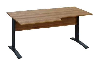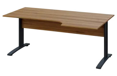 CRK 28 - 186 stůl kancelářský, rohový, levý, kovová podnož černá, deska 25 mm, široký 1800 mm, ořech světlý