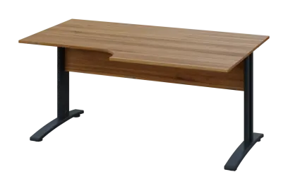 CRK 28 - 184 stůl kancelářský, rohový, levý, kovová podnož černá, deska 25 mm, široký 1800 mm, ořech světlý
