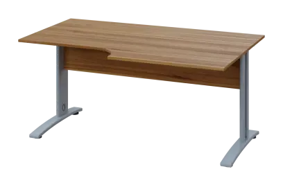 CRK 28 - 186 stůl kancelářský, rohový, levý, kovová podnož stříbrná, deska 25 mm, široký 1800 mm, ořech světlý