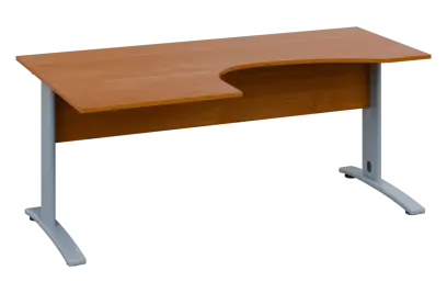 CEK 27 - 187 stůl kancelářský, rohový, pravý, kovová podnož stříbrná, deska 25 mm, široký 1800 mm, ořech světlý