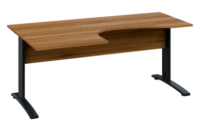 CEK 27 - 187 stůl kancelářský, rohový, pravý, kovová podnož černá, deska 25 mm, široký 1800 mm, ořech světlý