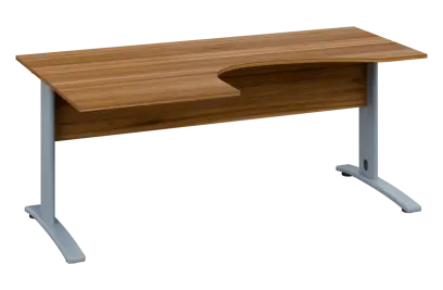 CEK 27 - 187 stůl kancelářský, rohový, levý, kovová podnož stříbrná, deska 25 mm, široký 1800 mm, ořech světlý