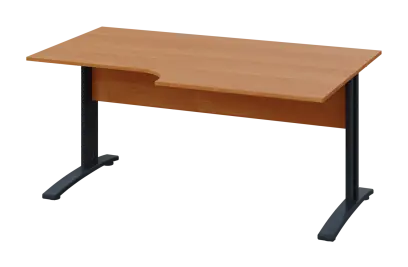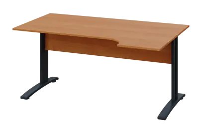 CRK 28 - 166 stůl kancelářský, rohový, levý, kovová podnož černá, deska 25 mm, široký 1600 mm, olše jantar