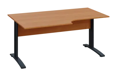 CRK 28 - 166 stůl kancelářský, rohový, levý, kovová podnož stříbrná, deska 25 mm, široký 1600 mm, olše jantar
