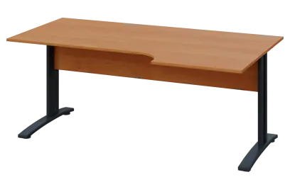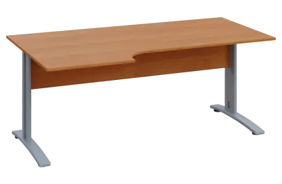 CRK 28 - 184 stůl kancelářský, rohový, levý, kovová podnož stříbrná, deska 25 mm, široký 1800 mm, olše jantar