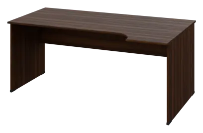 CRL 28 - 184 stůl kancelářský, rohový, pravý, dřevěná podnož, deska 25 mm, široký 1800 mm, ořech královský