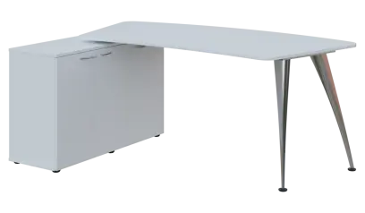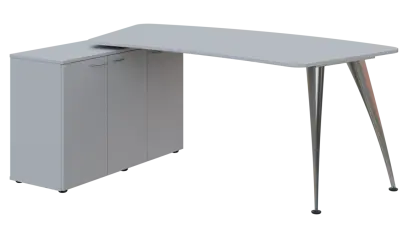 NXZR 113 - 18 stůl rohový, provedení levé, úložný prostor, kovová podnož chrom, deska 18 mm, široký 1800 mm, šedá