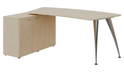 NXZR 113 - 18 stůl rohový, provedení levé, úložný prostor, kovová podnož chrom, deska 18 mm, široký 1800 mm, bříza světlá