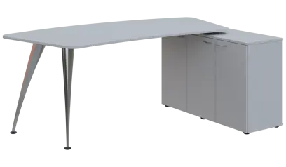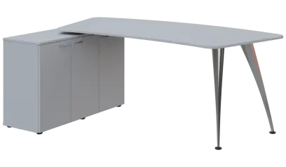 NXZR 113 - 19 stůl rohový, provedení levé, úložný prostor, kovová podnož chrom, deska 18 mm, široký 1800 mm, šedá