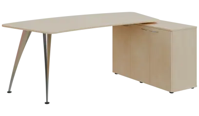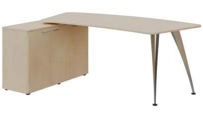 NXZR 113 - 19 stůl rohový, provedení levé, úložný prostor, kovová podnož chrom, deska 18 mm, široký 1800 mm, bříza světlá