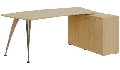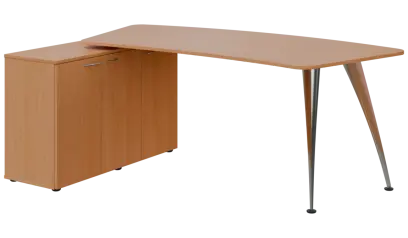 NXZR 113 - 19 stůl rohový, provedení levé, úložný prostor, kovová podnož chrom, deska 18 mm, široký 1800 mm, buk royal