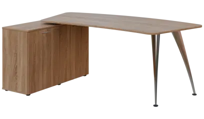 NXZR 113 - 19 stůl rohový, provedení levé, úložný prostor, kovová podnož chrom, deska 18 mm, široký 1800 mm, dub bardolino