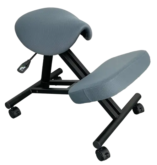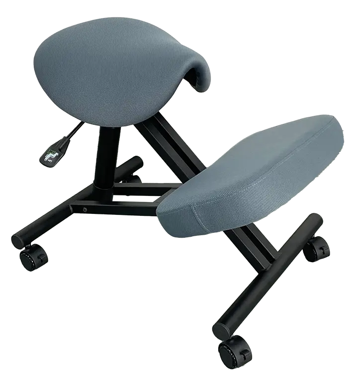 moderní klekačka na kolečkách je navržena pro podporu správného držení těla při sezení, sedák a opěrka pod nohy z vysoce kvalitní pěny, čalouněno odolnou látkou v šedé barvě