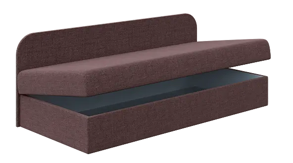 celočalouněná pohovka s úložným prostorem, čalouněná boční opěrná deska, dřevěná konstrukce, matrace z kvalitní pěny, pružinový rošt