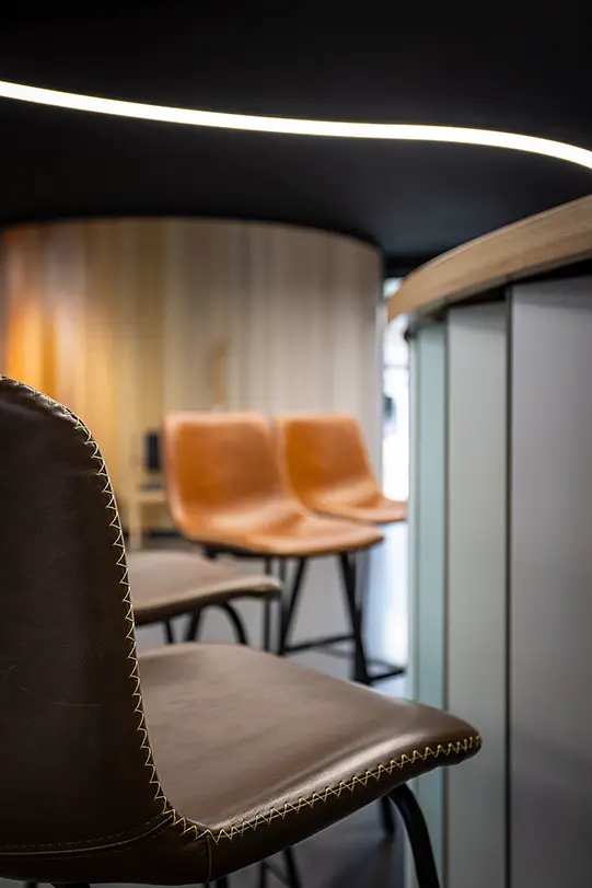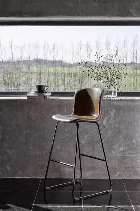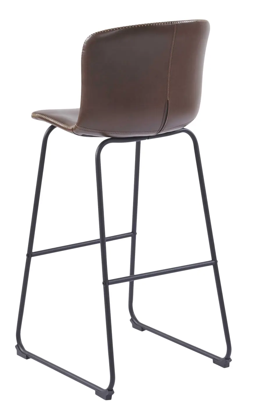 kožená barová židle, vintage kůže v provedení tmavě hnědá, základna matně černý kov