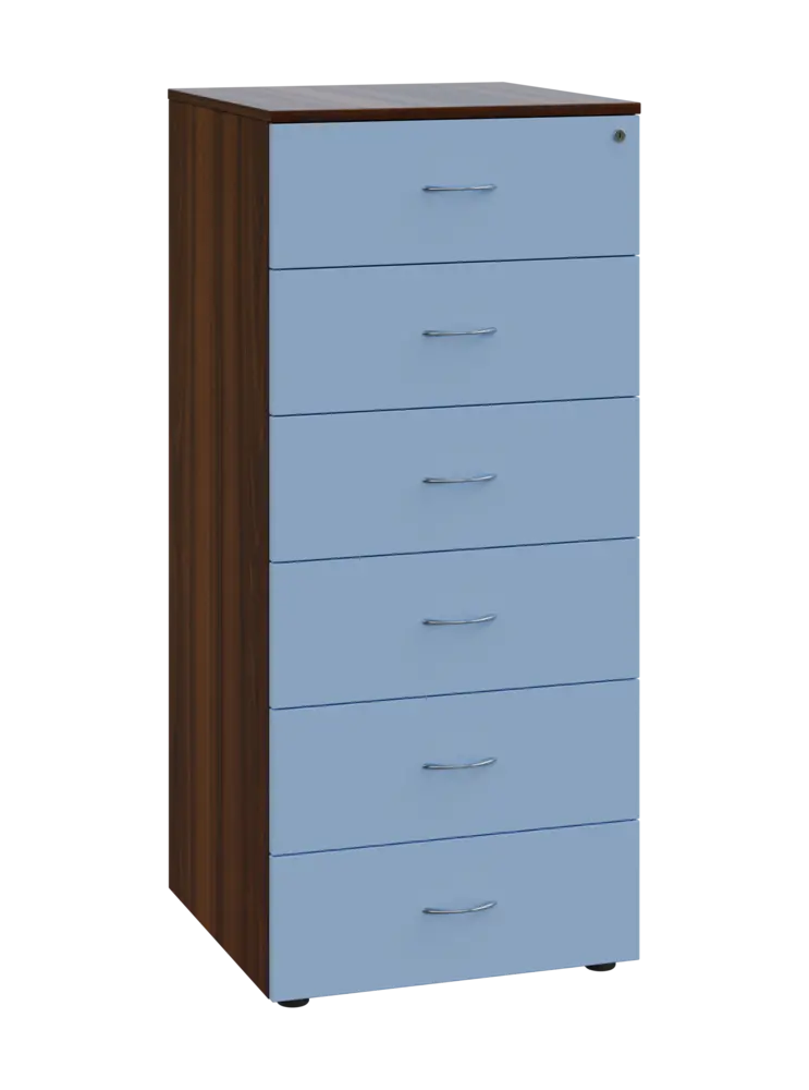 LKRP - A5 dřevěná kartotéka, 6-zásuvková, centrální zámek, korpus ořech královský/čílka pastelově modrá