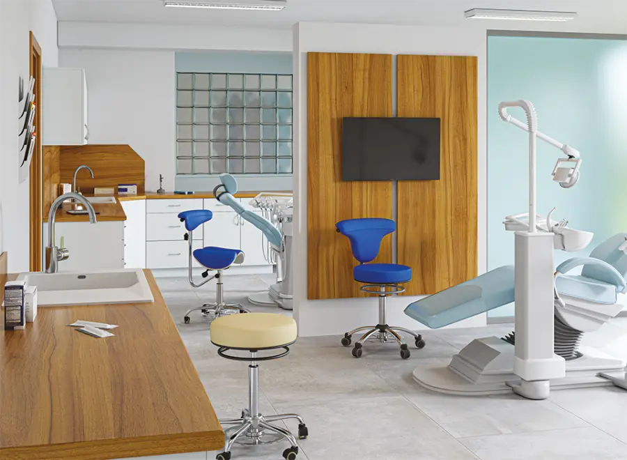ergonomická sedlová židle s děleným sedákem pro snížení zátěže na pánevní dno, otočná a výškově stavitelná loketní opěrka, čalouněno v ekologické kůži