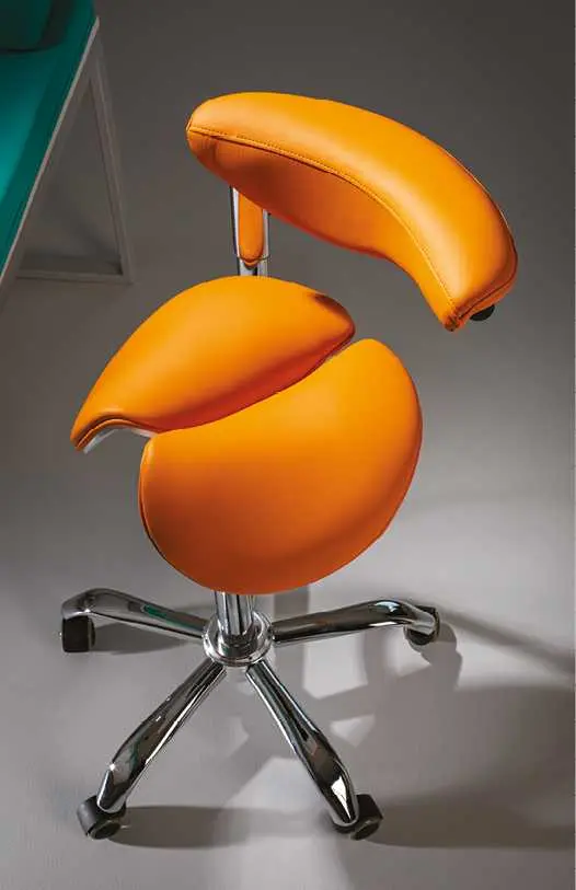 ergonomická sedlová židle s děleným sedákem pro snížení zátěže na pánevní dno, náklon sedáku s možnostní aretace v libovolné pozici, výškové nastavení