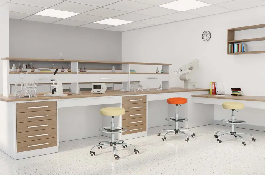 výškově nastavitelná otočná lékařská stolička s pětiramenným chromovaným křížem, výška sedáku je 8 cm