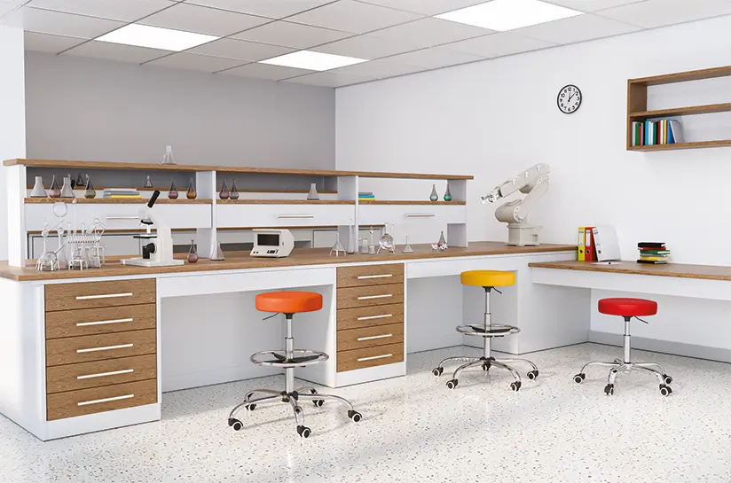 výškově nastavitelná otočná lékařská stolička s pětiramenným chromovaným křížem, výška sedáku je 8 cm