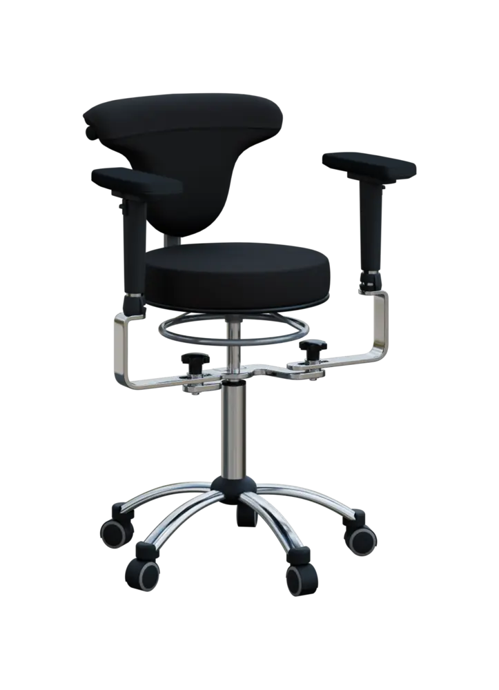 lékařská a laboratorní židle s opěrákem otočným o 360°, područky, ergonomicky tvarovaný sedák a opěrák