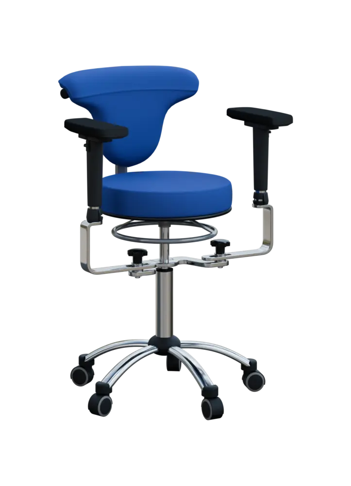 lékařská a laboratorní židle s opěrákem otočným o 360°, područky, ergonomicky tvarovaný sedák a opěrák