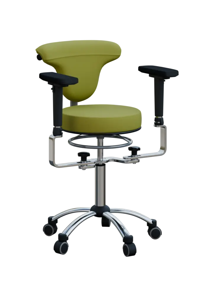 lékařská a laboratorní židle s opěrákem otočným o 360°, područky, ergonomicky tvarovaný sedák a opěrák