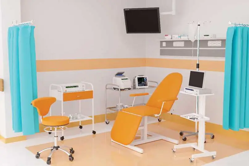 lékařská a laboratorní židle s opěrákem otočným o 360°, ergonomicky tvarovaný sedák a opěrák