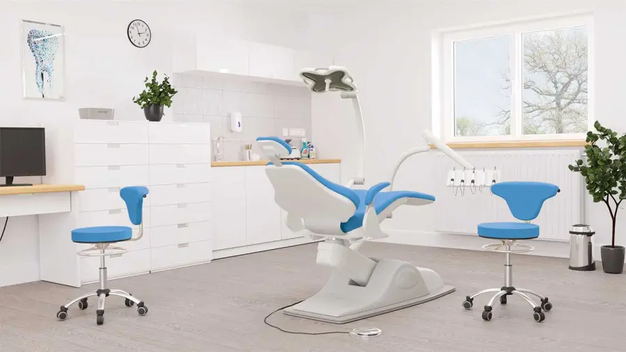 lékařská a laboratorní židle s opěrákem otočným o 360°, ergonomicky tvarovaný sedák a opěrák