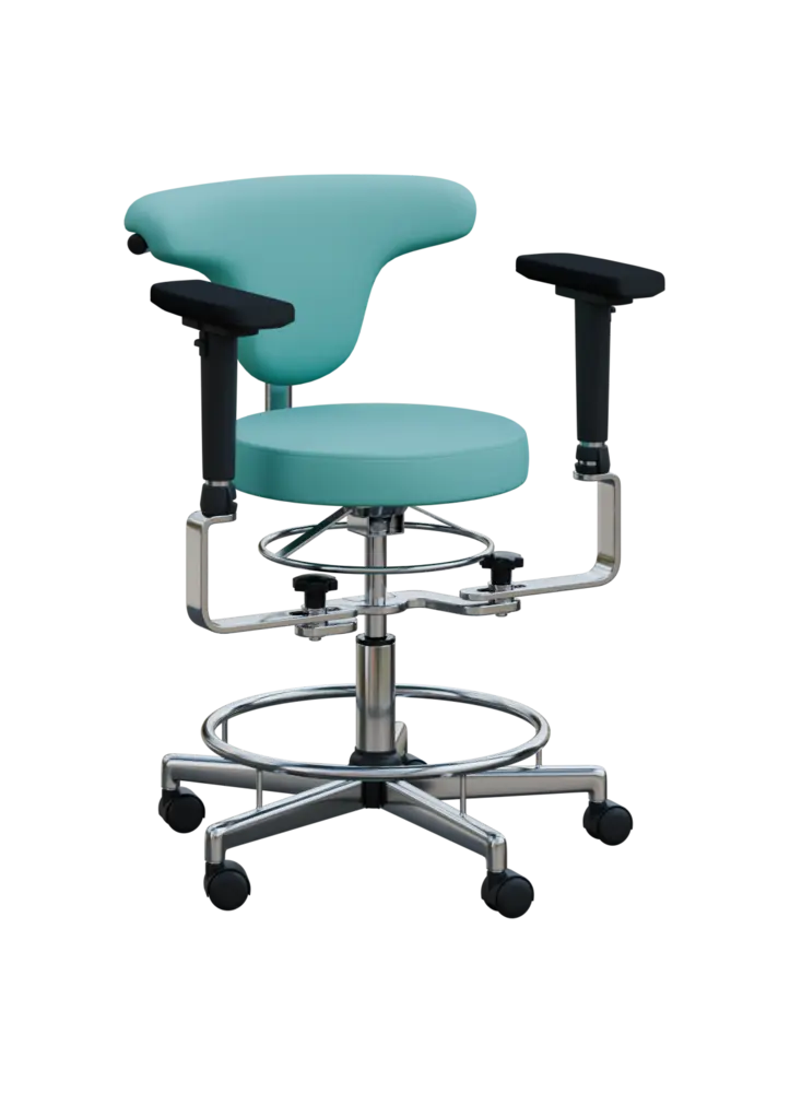 lékařská židle s otočnou zádovou oporou (360°), područky, výškové nastavení sedu, čalouněno v ekologické kůži