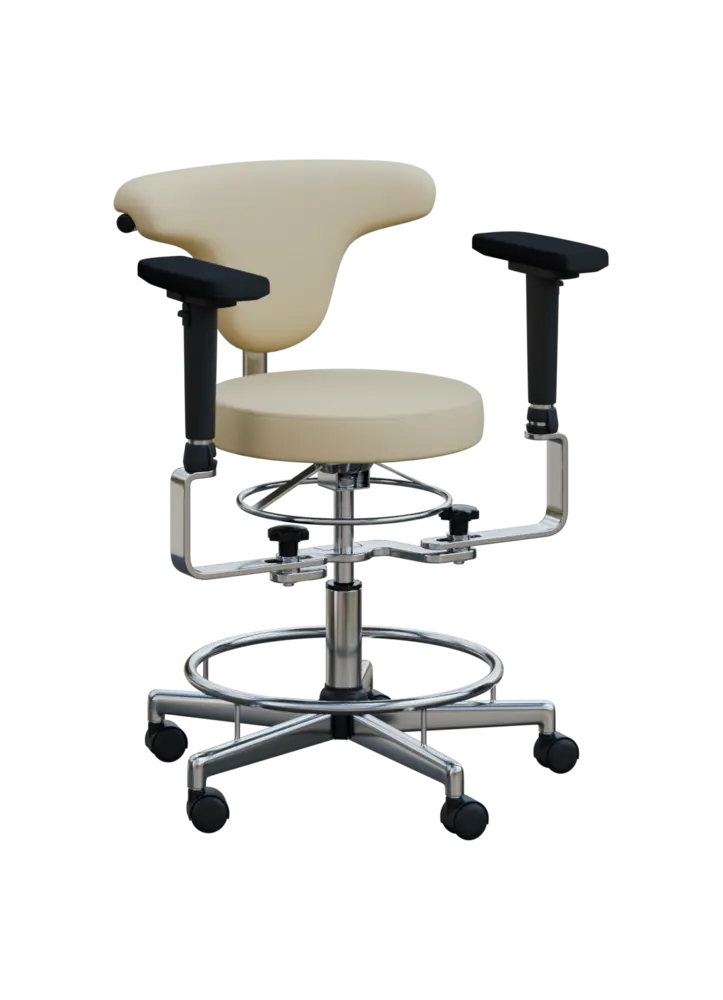 lékařská židle s otočnou zádovou oporou (360°), područky, výškové nastavení sedu, čalouněno v ekologické kůži