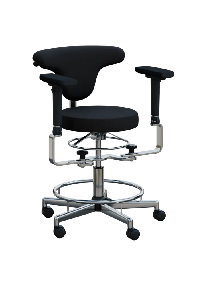 lékařská židle s otočnou zádovou oporou (360°), područky, výškové nastavení sedu, čalouněno v ekologické kůži