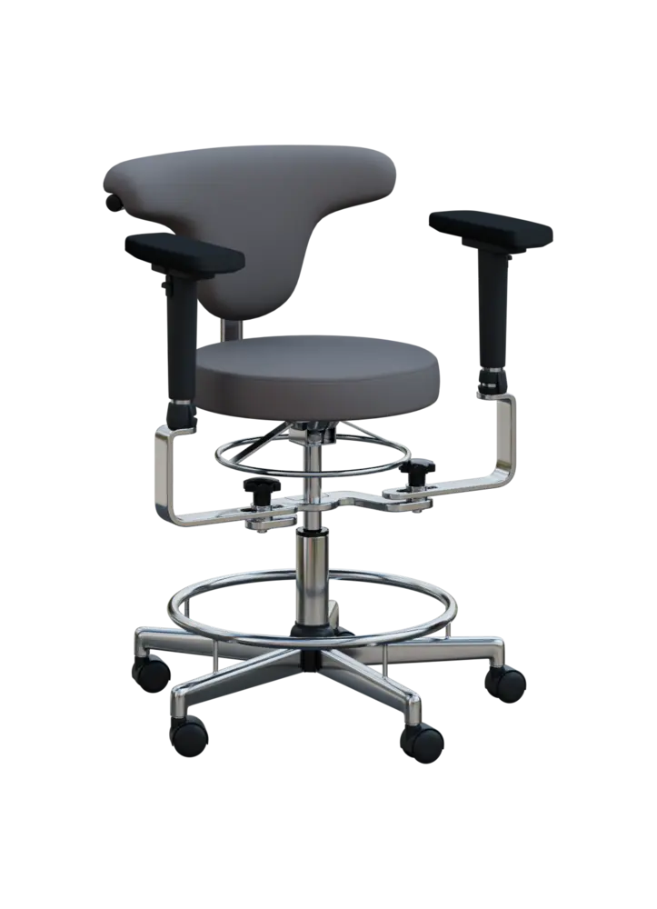 lékařská židle s otočnou zádovou oporou (360°), područky, výškové nastavení sedu, čalouněno v ekologické kůži