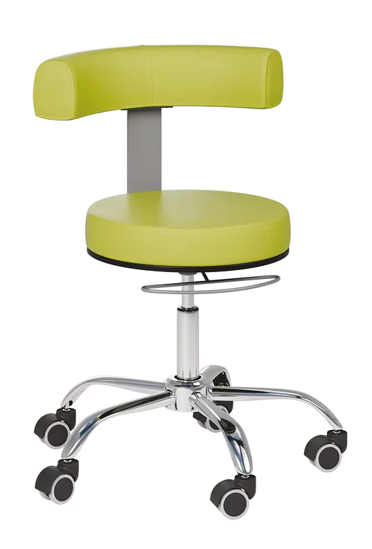 lékařská židle s ergonomicky tvarovanou opěrkou zad, kruhový sedák, čalouněna odolnou ekologickou kůží vhodnou do zdravotnického prostředí