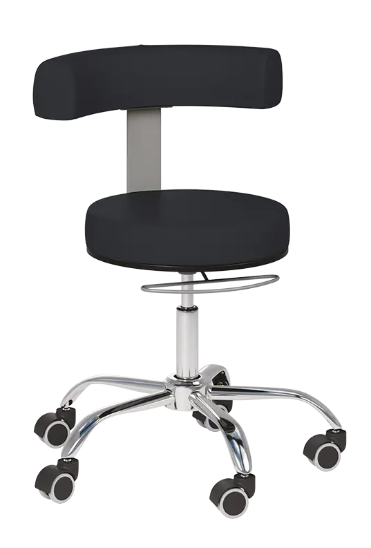 lékařská židle s ergonomicky tvarovanou opěrkou zad, kruhový sedák, čalouněna odolnou ekologickou kůží vhodnou do zdravotnického prostředí