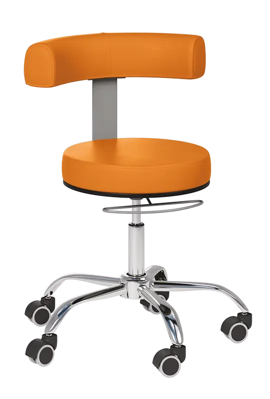 lékařská židle s ergonomicky tvarovanou opěrkou zad, kruhový sedák, čalouněna odolnou ekologickou kůží vhodnou do zdravotnického prostředí