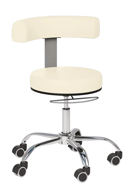 lékařská židle s ergonomicky tvarovanou opěrkou zad, kruhový sedák, čalouněna odolnou ekologickou kůží vhodnou do zdravotnického prostředí