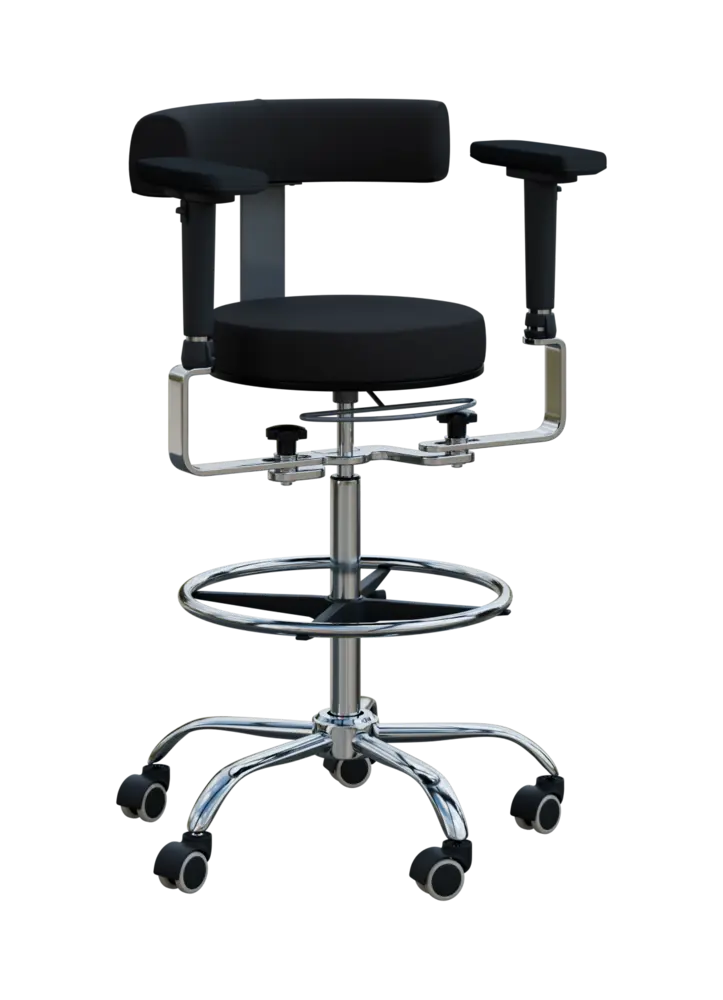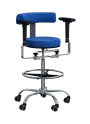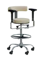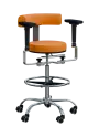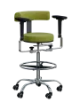 lékařská židle s ergonomicky tvarovanou opěrkou zad, kruhový sedák, područky, čalouněna odolnou ekologickou kůží vhodnou do zdravotnického prostředí