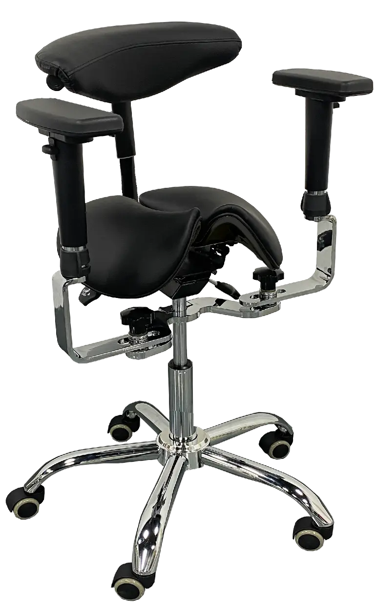 • disponuje náklonem sedáku ve tvaru sedla pro snížení zátěže na pánevní dno s možností aretace v libovolné pozici