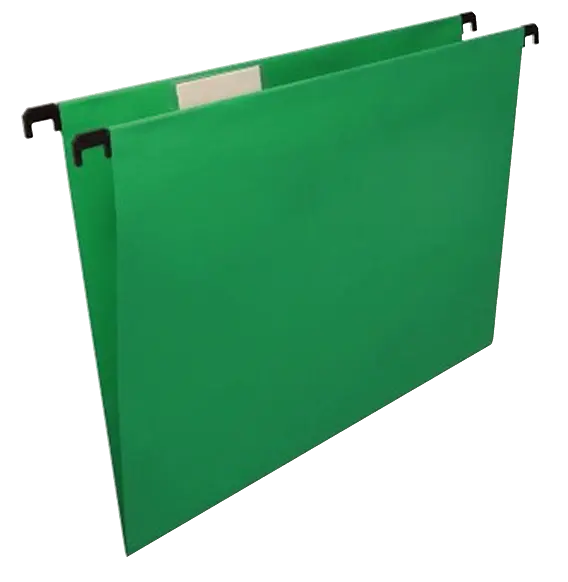 standardní závěsné papírové desky s posuvným plastovým rozlišovačem a V-dnem, vyrobené z 100% recyklovaného kartonu (220 g/m2) pro dlouhou životnost