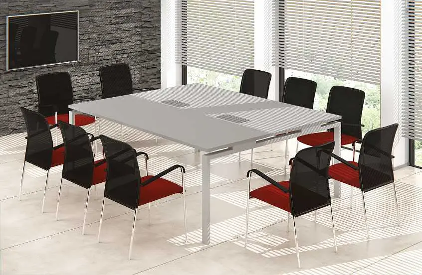 stohovatelné konferenční křesílko s černou síťovinou na opěráku, barevné sedáky, kostra chromovaná