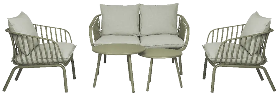 komfortní a praktická sedací souprava navržená především pro exteriér, skvěle se hodí i do interiéru, plastové skořepiny křesel jsou tvořeny dekorativním svislým výpletem, který dodává křeslům lehkost a vzdušnost